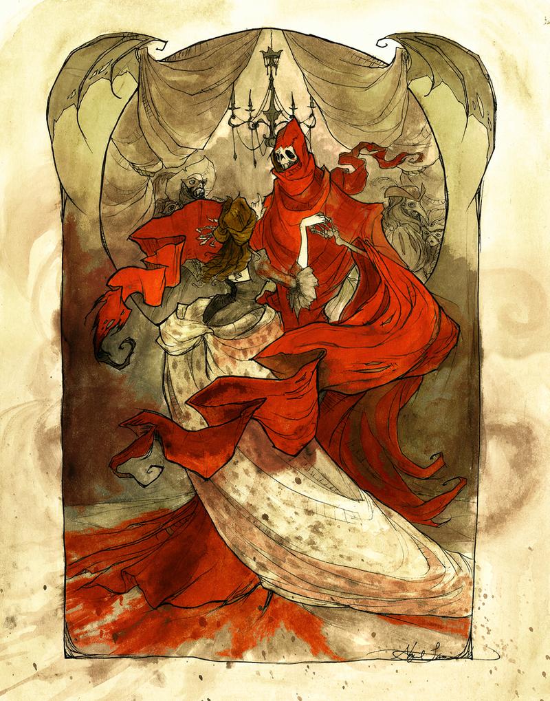 «Durante mucho tiempo, la «Muerte Roja» había devastado la comarca. Jamás peste alguna fue tan fatal, tan horrible. Su encarnación era la sangre: el rojo y el horror de la sangre.»